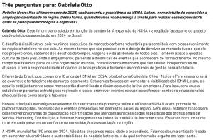 01 – Nos últimos meses de 2023, você assumiu a presidência da HSMAI Latam, com o intuito de consolidar a ampliação da entidade na região. Dessa forma, quais desafios você enxerga à frente para realizar essa expansão? E quais as principais estratégias e objetivos?